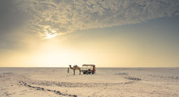 Arrive by evening at your lodge near the Little Rann, just in time to soak in the sunset across this surreal, salt-crusted wilderness.